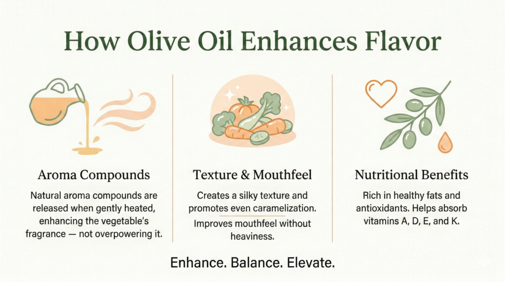 No discussion about Italian vegetables is complete without olive oil. Extra virgin olive oil is not just a cooking fat; it is a flavor enhancer. In many regions of Italy, olive oil varies in taste depending on the olives and climate. Some oils are peppery and bold, others smooth and buttery.