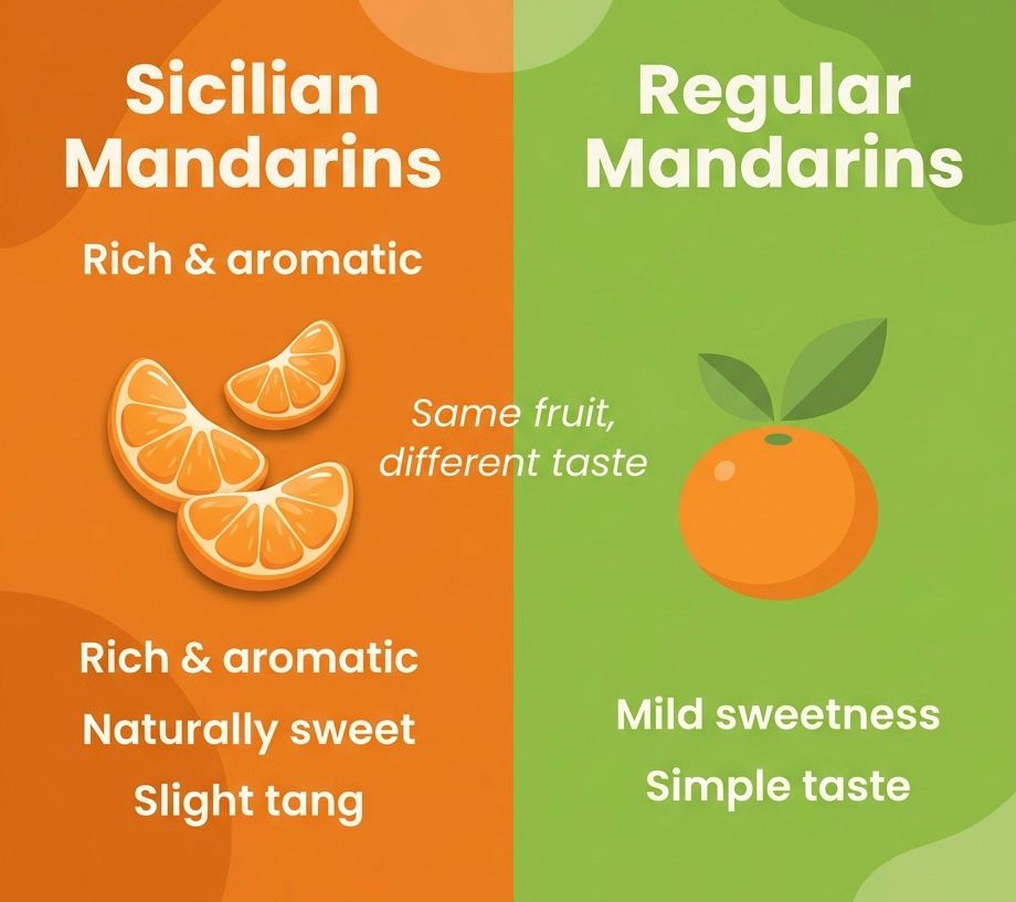 - Sicilian Mandarins: Rich, aromatic, and naturally sweet with a slight tang